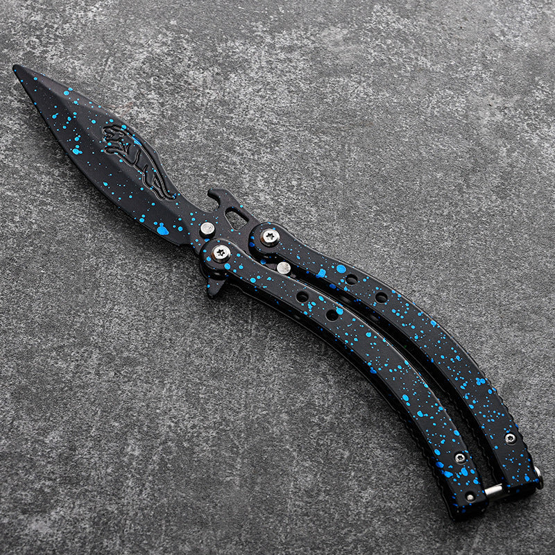Der Galaxy Butterfly Knife Trainer zeichnet sich aus mehreren Gründen aus. Erstens ist es mit einer Klinge aus rostfreiem Stahl gefertigt, was Haltbarkeit und Langlebigkeit gewährleistet. Die ungeschärfte Klinge sorgt für zusätzliche Sicherheit und ist somit ideal für Anfänger und Enthusiasten gleichermaßen.